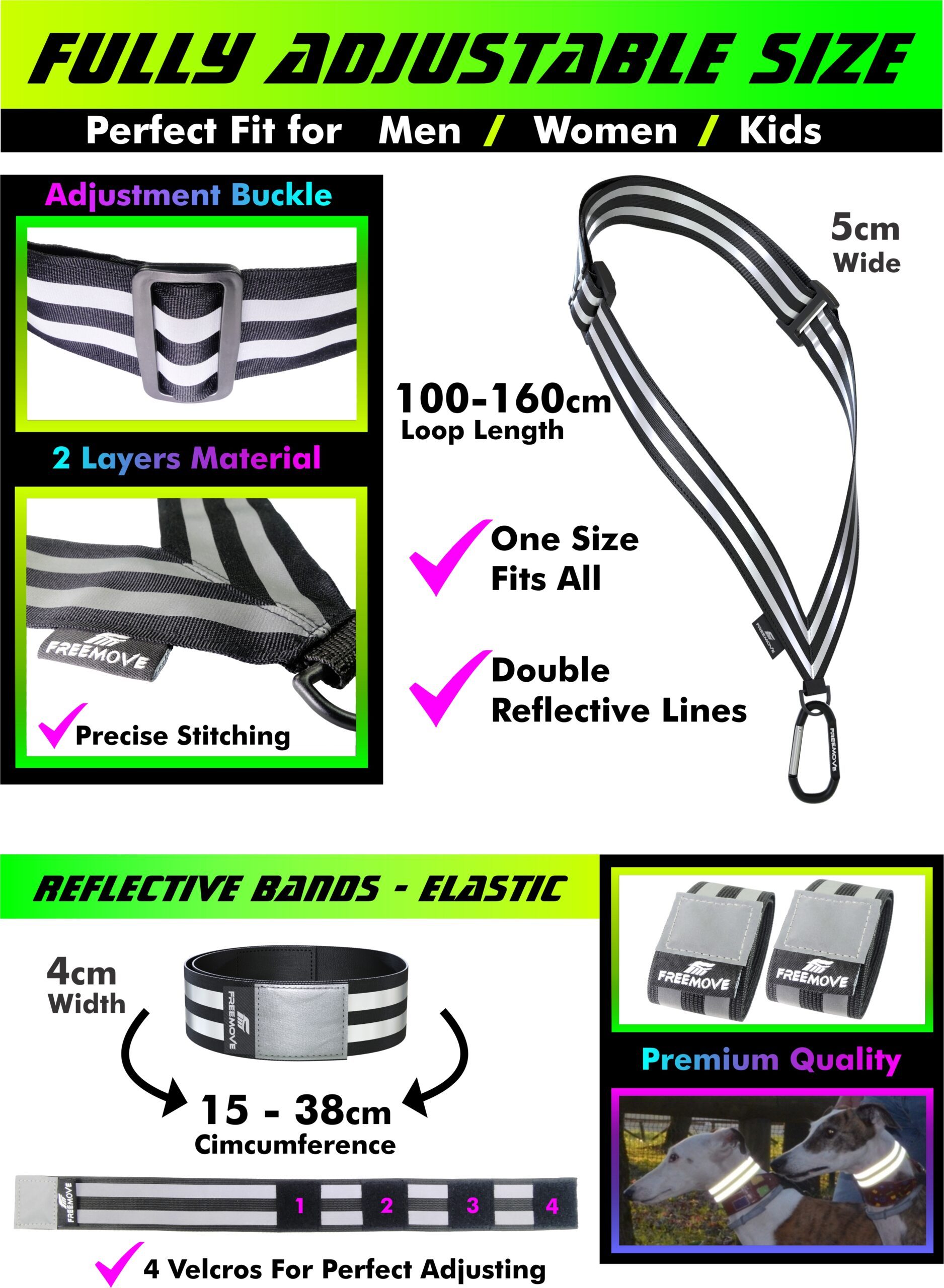A handy aluminum carabiner at the end of the Sash allows you to attach keys, a flashlight, dog treats, or other essentials for added convenience. Additionally, the package includes two reflective elastic bands that can be used as an extra safety measure for yourself or as a reflective collar for your pet. These bands are adjustable with a Velcro closure, making them suitable for dogs of various sizes.